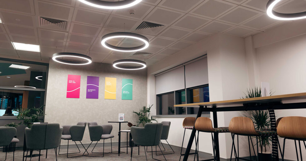 I hovedkontoret til Seddon i Storbritannia skal nye LED-armaturer redusere energiforbruket til belysning med inntil 80 prosent