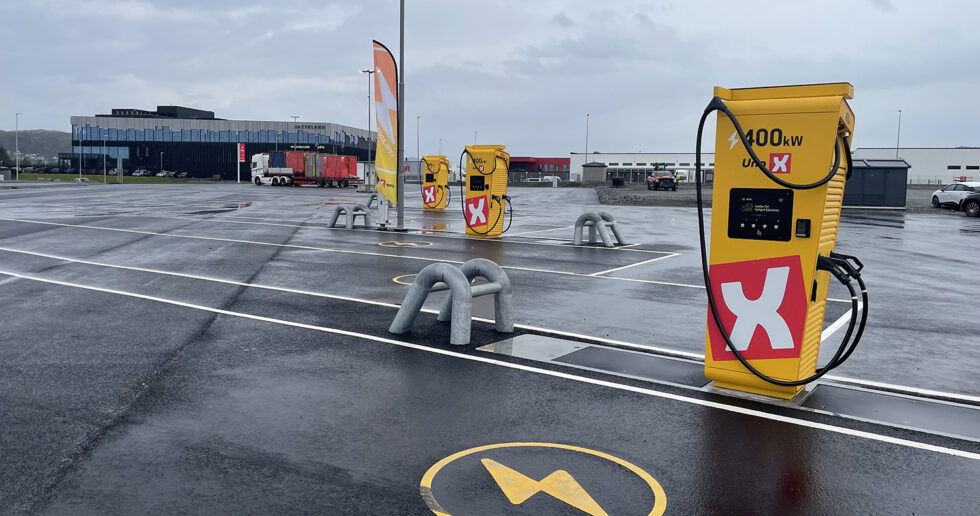 Den nye døgnhvileplassen ved E39 i Rogaland får inntil ti ladeplasser, med en effekt på inntil 400 kW per ladepunkt Foto: Lars Olve Hesjedal/Statens vegvesen