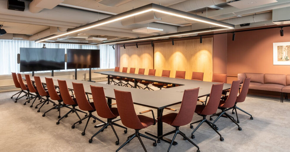 – Dette inspirerte de til å bruke våre C80 lineære armaturer for å lage firkanter og rektangler over møtebordene, som gir et særegent uttrykk.
