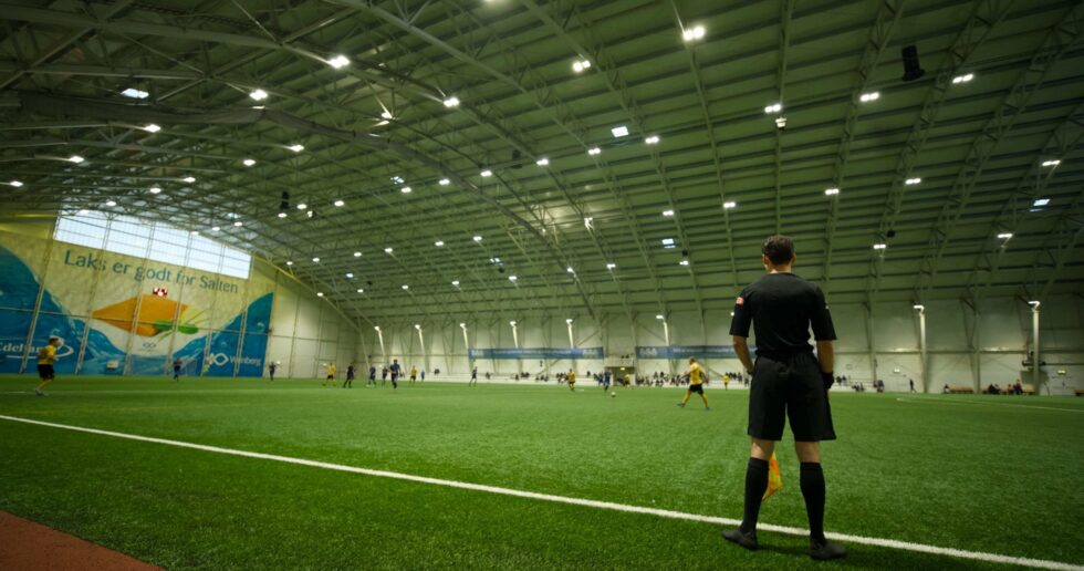 Armaturene er koblet til Glamox sitt Ethernet2DALI lysstyringssystem, som gjør det mulig med presis lysjustering. Eksempelvis med å kun å slå på én del av banen under trening, eller kun aktivere lysene på løpebanen.