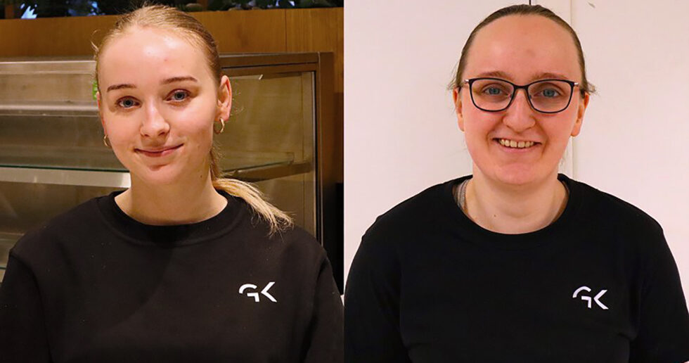 Hanna (t.v.) og Nora Elshøy liker seg godt som lærlinger i GK. De anbefaler yrkesfag spesielt for unge som vil ha en aktiv og variert arbeidshverdag